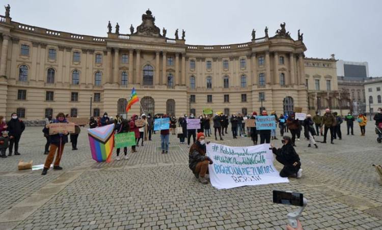 Almanya’nın başkenti Berlin’in köklü üniversitelerinden Humboldt Üniversitesi’nin önündeki Bebel Meydanı'nda Boğaziçi Üniversitesi'ne kayyum ataması protesto edildi. Boğaziçi Üniversitesi mezunları tarafından düzenlenen dayanışma eyleminde, “Boğaziçi Üniversitesi ve diğer Türkiye üniversitelerinin yurtdışındaki mezunları, evimizdeki gösterilere dair haberleri kaygı ile izliyoruz” denildi.