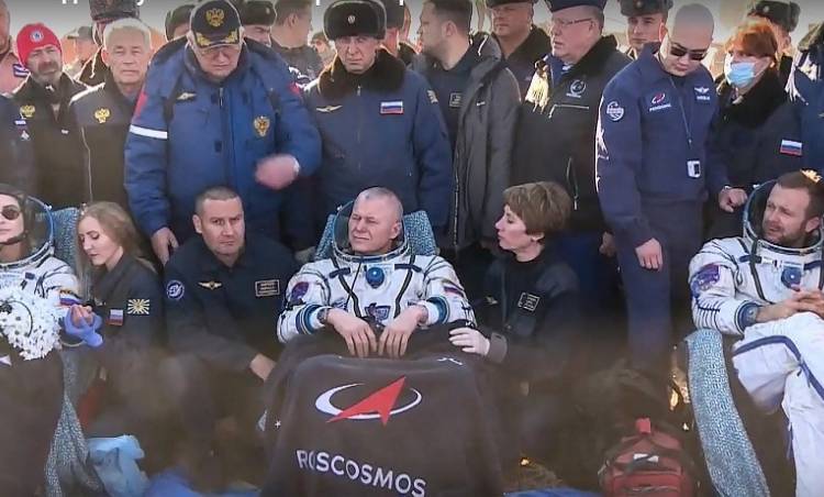 Uluslararası basında yer alan haberlere göre, kozmonot Oleg Novitsky, oyuncu Yulia Peresild ve yönetmen Klim Shipenko, sabah saatlerinde Kazakistan'ın bozkırlarındaki uzay üssüne indi. İniş, Rusya Uzay Ajansı (Roskosmos) tarafından canlı olarak yayınlandı.