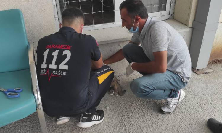 Van'ın Gürpınar İlçesi 112 sağlık çalışanları yolda buldukları yaralı yavru köpeği,Gürpınar Devlet Hastanesi Acil Servisine yetiştirdiler.Burada yaralı köğeğe ilk müdahaleyi Devlet Hastanesi çalışanları ve 112 sağlık çalışanları birlikte yaptı.
